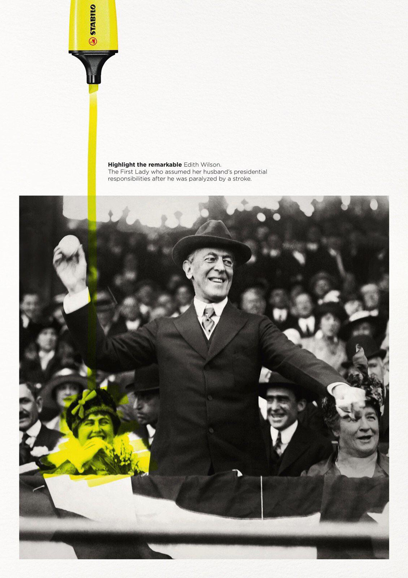 A couple of years ago, the stationery company Stabilo launched an advertising campaign called ‘Highlight the Remarkable’. They took photos of male-dominated scenes and ‘highlighted’ women who had been upstaged, and whose successes had not been recognised. For example: